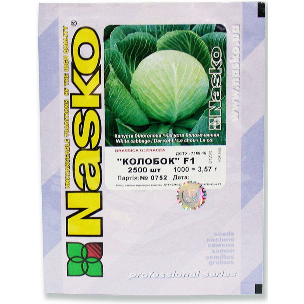 Внешняя окраска кочана зеленая, в разрезе - белая. Растения гибрида капусты Колобок F1 компактен. В поле гибрид не поражается слизистым бактериозом, серой и белой гнилями, устойчив к сосудистому бактериозу и фузариозному увяданию. Гибрид капусты Колобок F1 рекомендуется для продолжительного (8-10 месяцев) хранения. В период хранения не поражается точечным некрозом. Отличается высокой морфологической и биологической однородностью растений. Урожайность – 70-110 т/га. Плотность посадки растений (посева семян) гибрида позднеспелой капусты Колобок F1 составляет 35-40 тысяч на 1 га.